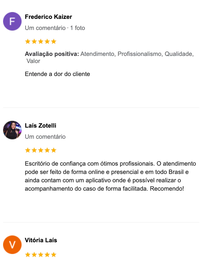 Temos uma equipe completa e pronta para te atender em todo território nacional. Você consegue consultar e acompanhar o seu caso em tempo real pelo nosso aplicativo exclusivo e também conta com auxílio dos doutores de forma próxima e humanizada.